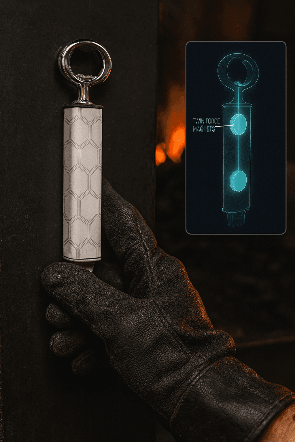 Two high-strength embedded magnets that snap The Enforcer onto fridges, grills, toolboxes—basically anything metal that isn’t trying to run away. Designed for instant, hands-free storage, so you can pretend you always know exactly where you left it.